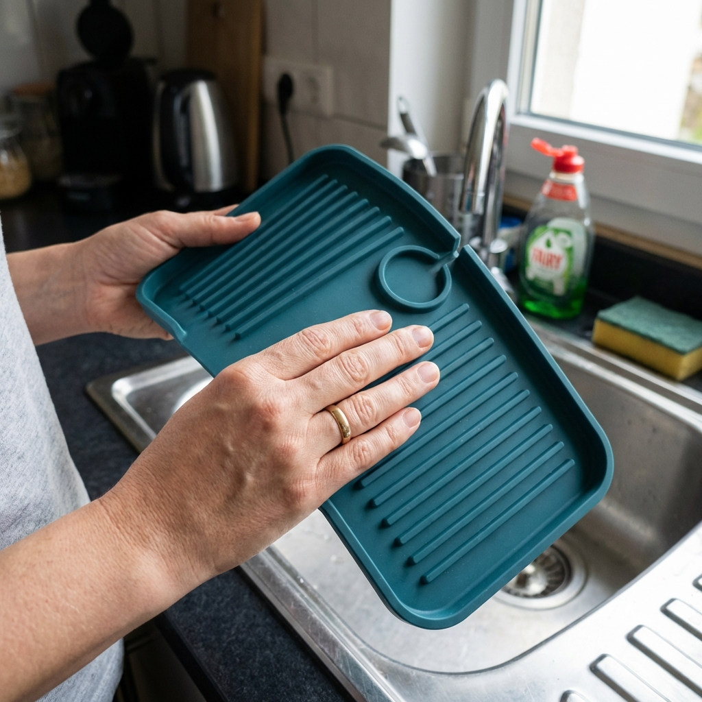 Spływak™ przechwytuje wodę i odprowadza ją pasywnie do zlewu. Zakładasz raz – i zapominasz. Efekt natychmiastowy. Zero wysiłku.